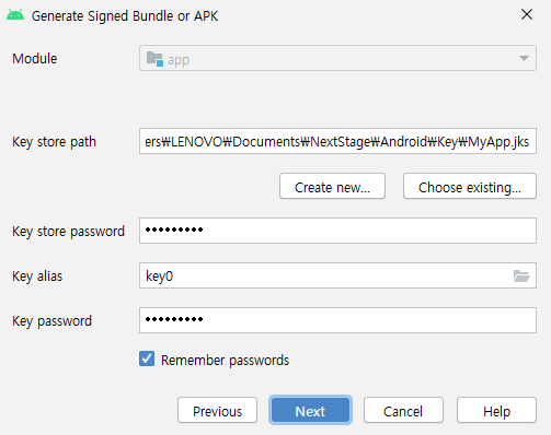 5. 별도로 지정하지 않으면 AndroidStudioProjects\appName\app\release 아래에 app-release.apk로 생성됩니다.