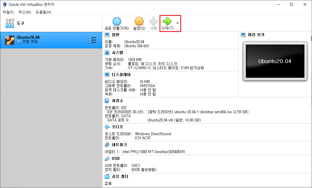 VirtualBox에 Ubuntu를 설치한다. 설치 버전은 현재 최신 LTS Version인 20.04를 기준으로 한다.